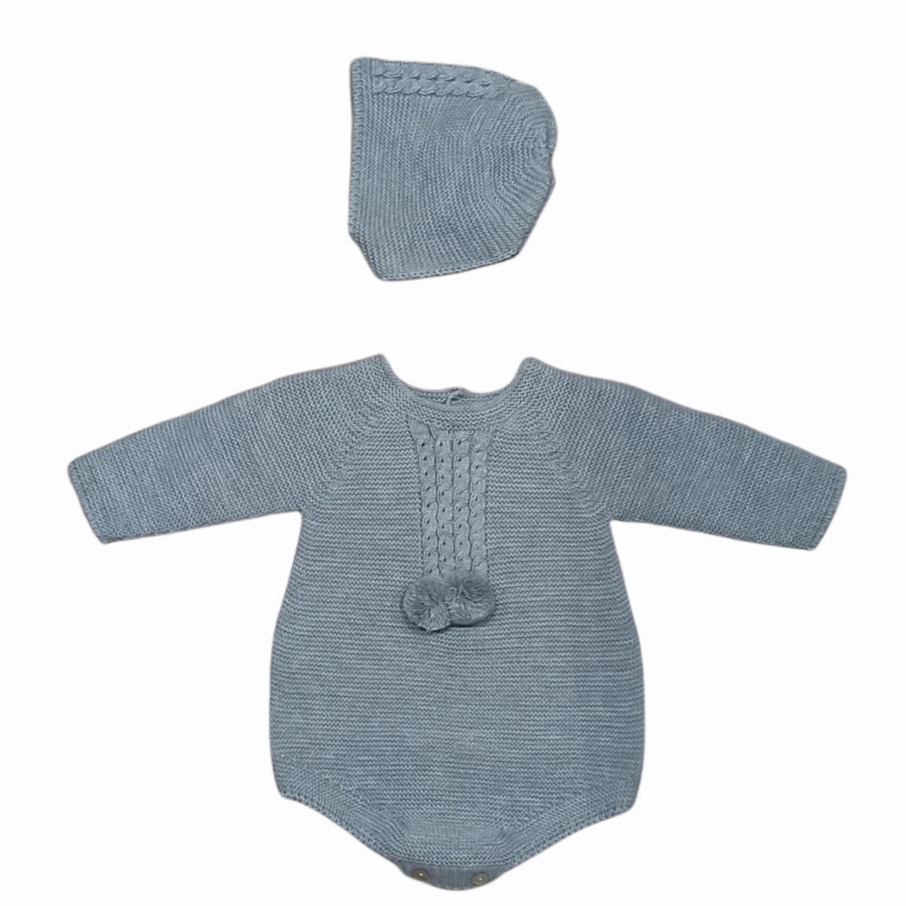 Conjunto compuesto por ranita y capota de punto bobo con ochitos
