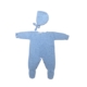 El pelele presenta un diseño calado vertical que aporta frescura y un aire sofisticado, además de una abertura inferior con botones que facilita el cambio de pañal. La capota a juego completa el look, ofreciendo un estilo tradicional que nunca pasa de moda y un extra de abrigo para los meses más frescos.