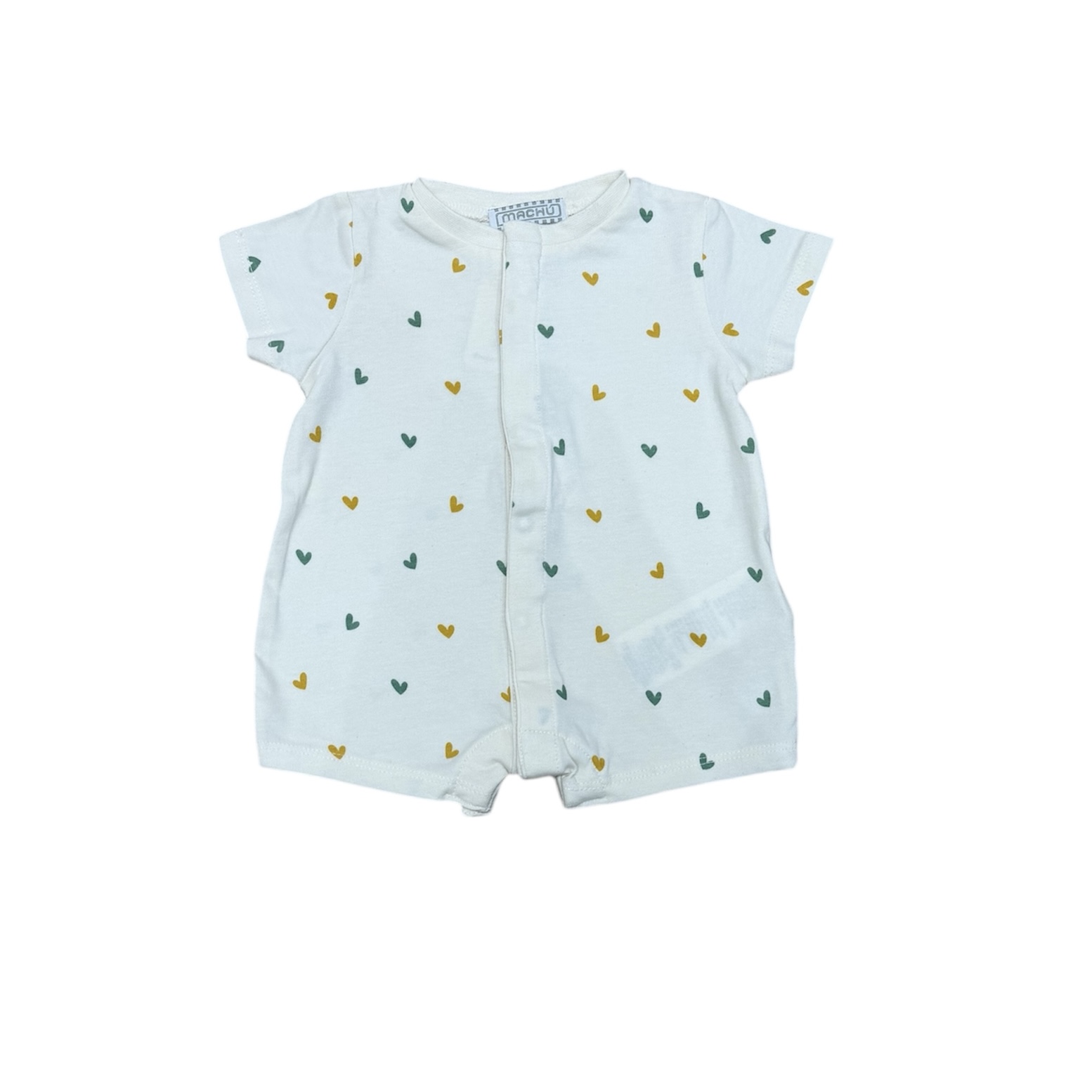 Presenta un diseño sencillo y atemporal en color blanco roto, con un delicado estampado de pequeños corazones en tonos verdes y mostaza que aporta un toque dulce sin recargar. Un estampado bonito hoy y dentro de unos años, como las prendas de siempre.